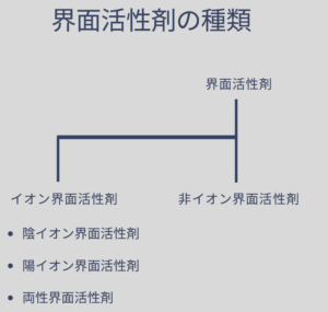 界面活性剤は大きく分けて以下のように分類されています。
