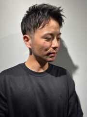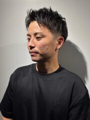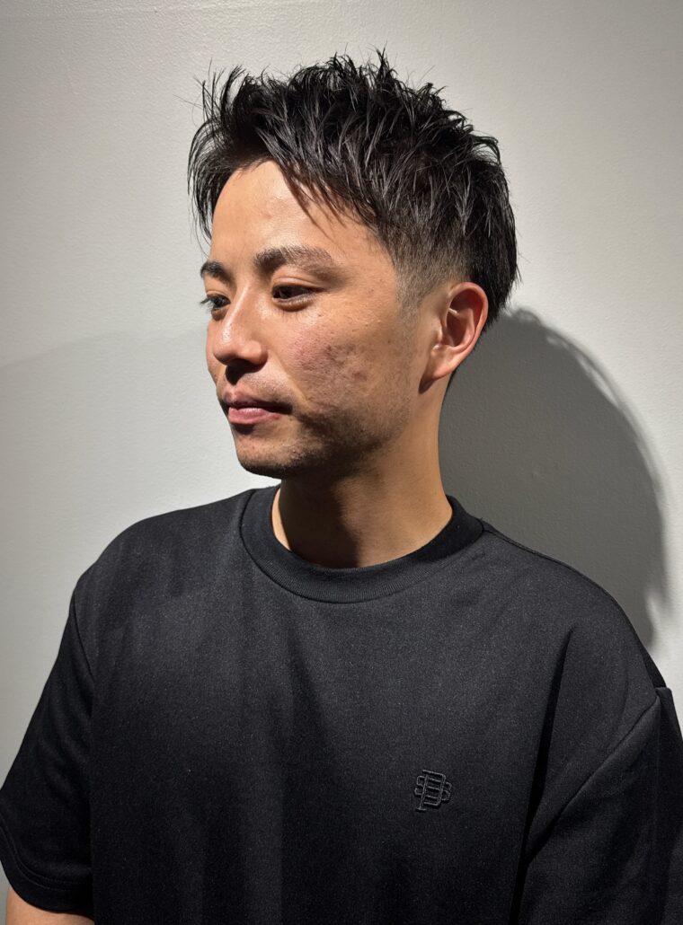 ツーブロックを入れてすっきり感を出したアップバングのスタイル