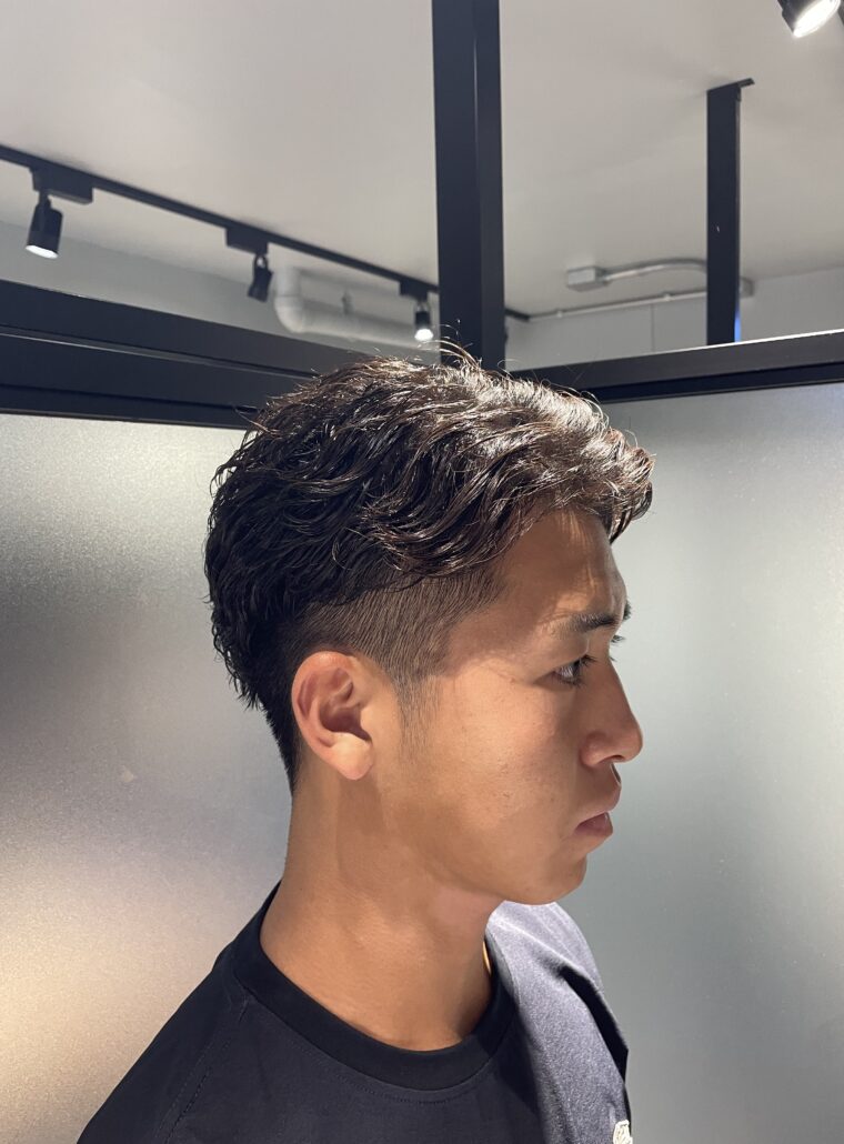 Name ニュアンスパーマ Data styleニュアンスパーマ lengthショート setグリース、ソフトWax Point 少し強めの毛流れパーマ。一度前に向かって乾かした後、後ろへ流すとボリューム感だったりきれいな毛流れが出ます。スタイリング剤を全体に均一に揉み込んだ後、幅の広いクシでとかすと簡単にセット出来ます。