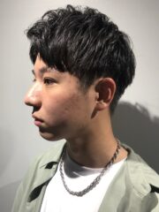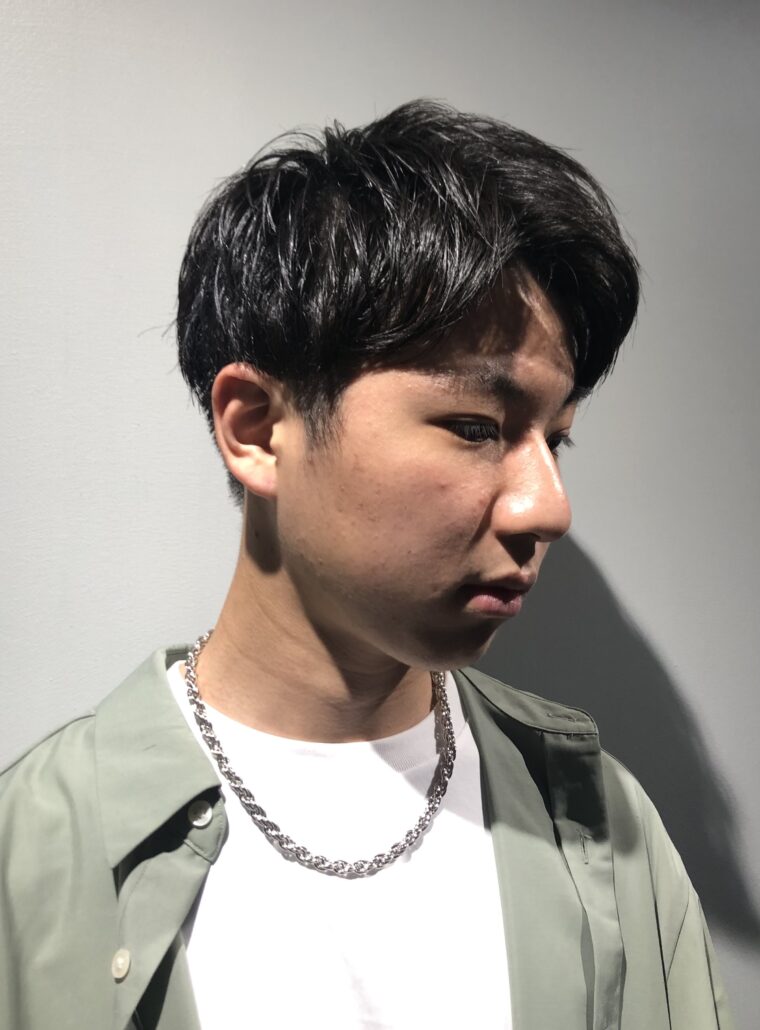 Name アップバング×ミディアム Data styleUPバング×ミディアム×マッシュ lengthミディアム setワックス、流さないトリートメント Point もみあげ周りを刈り上げ、すっきりとしています。 清潔感のあるスタイルで、スーツとの相性もよくサラリーマンにオススメです。